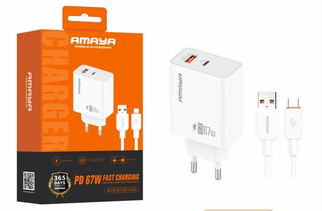Upgrade to the ACW-E72D+C63 67W charger and ensure your devices are always charged at maximum speed and safety. Click below to power up your productivity!