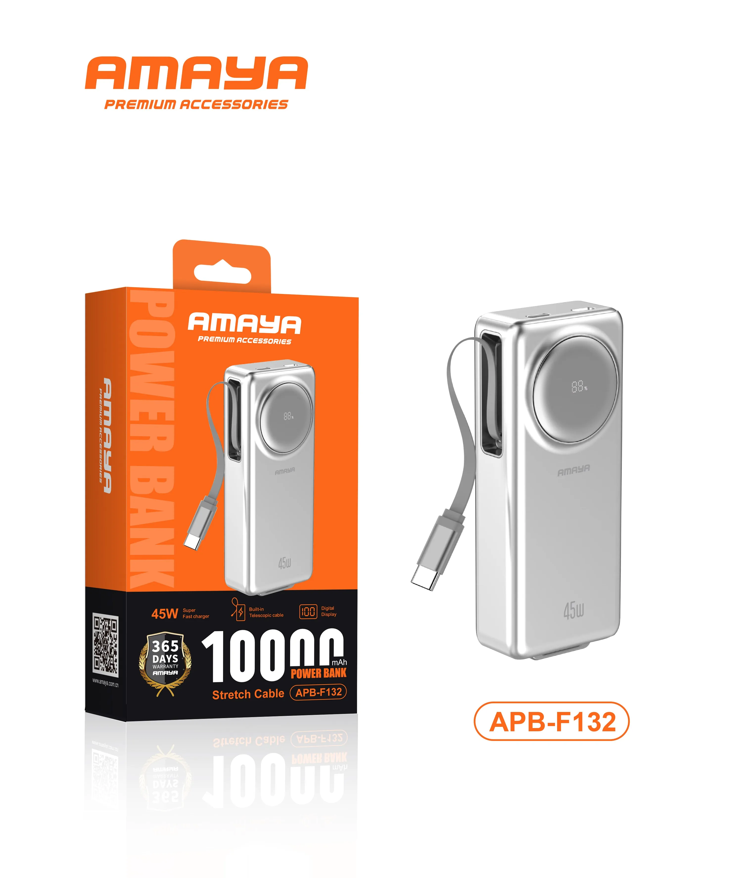 🔋Amaya APB-F132 45W 10,000mAh Power Bank – Super Fast Charging with Built-in Stretch Cable