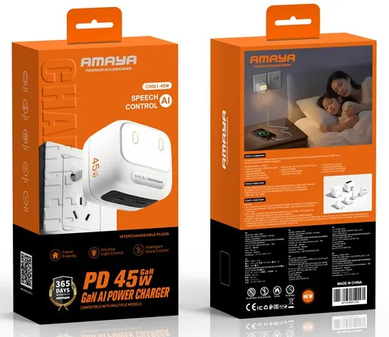 AMAYA CH061 45W GaN AI Charger – Voice-Controlled Night Light & High-Speed PD Charging