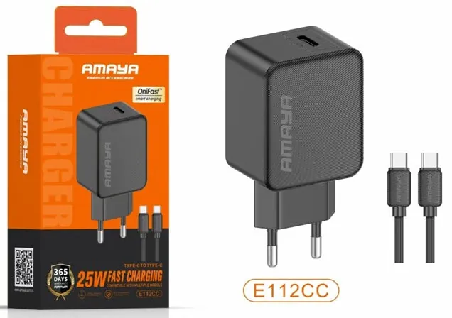 Don't settle for slow charging. Equip your customers with the rapid, reliable power of the Amaya E112CC 25W Type-C Fast Charger, backed by a full 1-Year Warranty.
